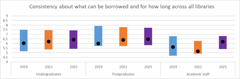 A number of the most pressing issues for students are being addressed through the 2022–2027 Strategy, and solutions are in the process of being implemented. Therefore, respondents will not yet have felt the benefit of changes such as extending borrowing from the CSF, or improved comfort in the reading rooms, so this result is not unexpected.